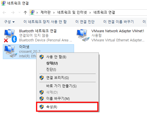 1. 네트워크 연결 - 이더넷 - 속성