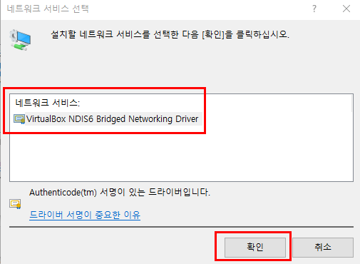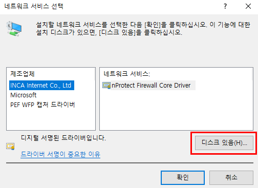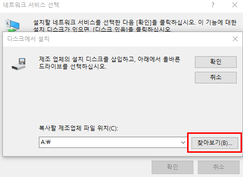 4. 네트워크 서비스 선택 - 디스크 있음(H)
