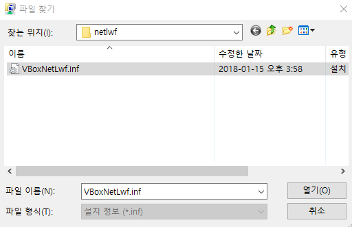 6. VBoxNetLwf.inf 파일 찾아서 열기