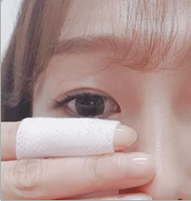 횟수는 약 20회 전후로 눈 안쪽에서 바깥쪽 방향으로 닦습니다.