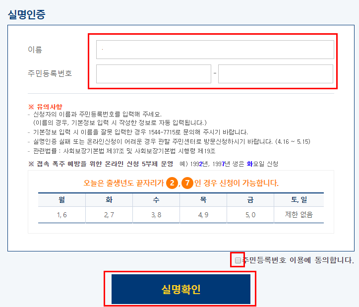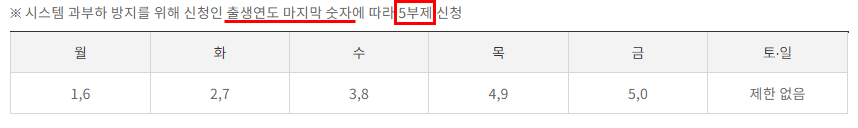 공적 마스크 판매와 마찬가지로 5부제를 시행중이니 본인에게 해당하는 날에 신청하시면 됩니다~