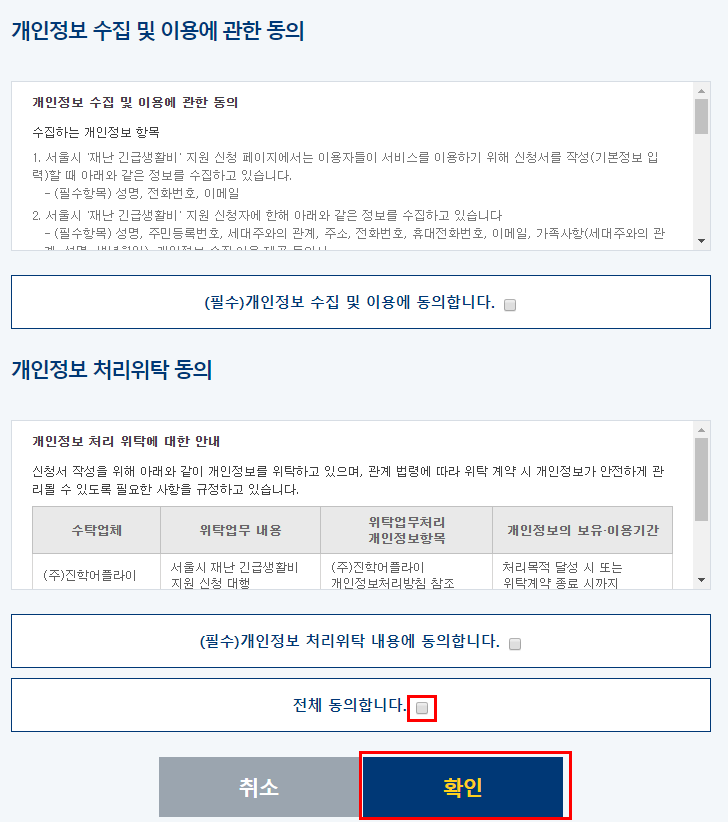 4. 기본정보 입력 및 개인정보 동의 체크 후 확인