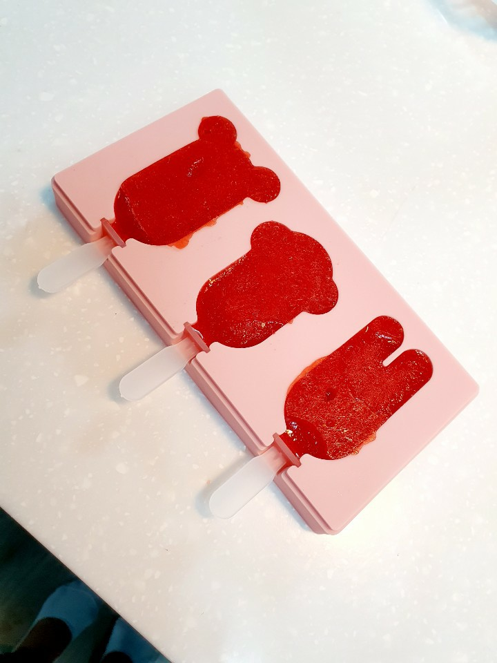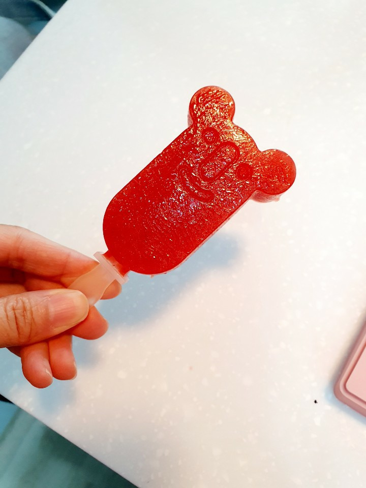 아이가 좋아하는 쥬스 같은 액체를 틀에 넣어서 얼려주시기만 하면 끝!