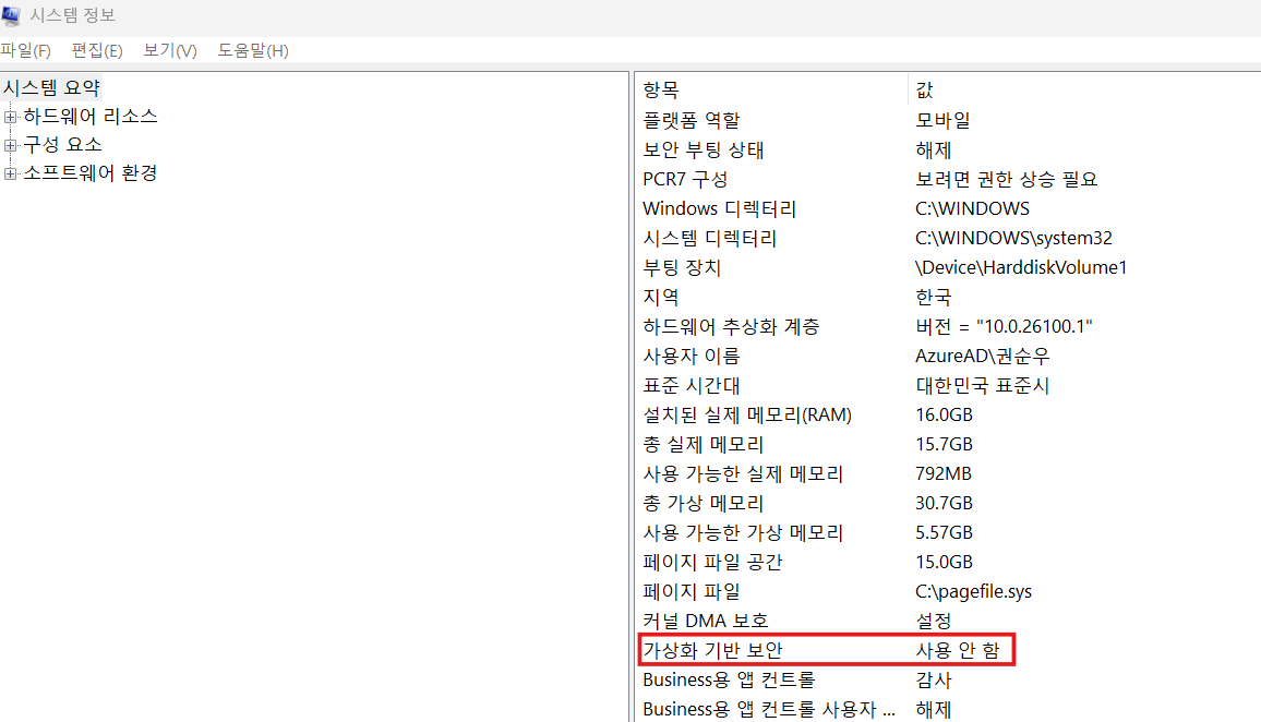 가상화 기반 보안 끄는 법에 대해 구글링 했을 때 나오는 모든 방법들을 써도 해결이 되지 않았지만