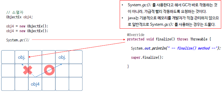 객체가 GC에 의해서 메모리에서 제거 될 때 finalize() 메서드가 호출된다