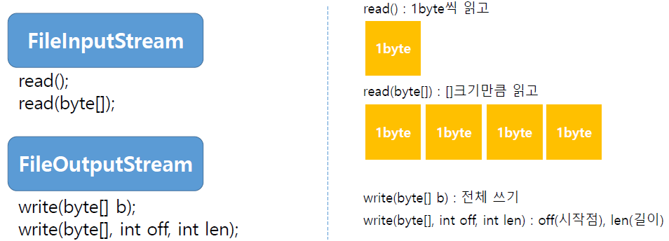 파일에 데이터를 읽고/쓰기 위한 클래스로 read(), write() 메서드를 이용한다.